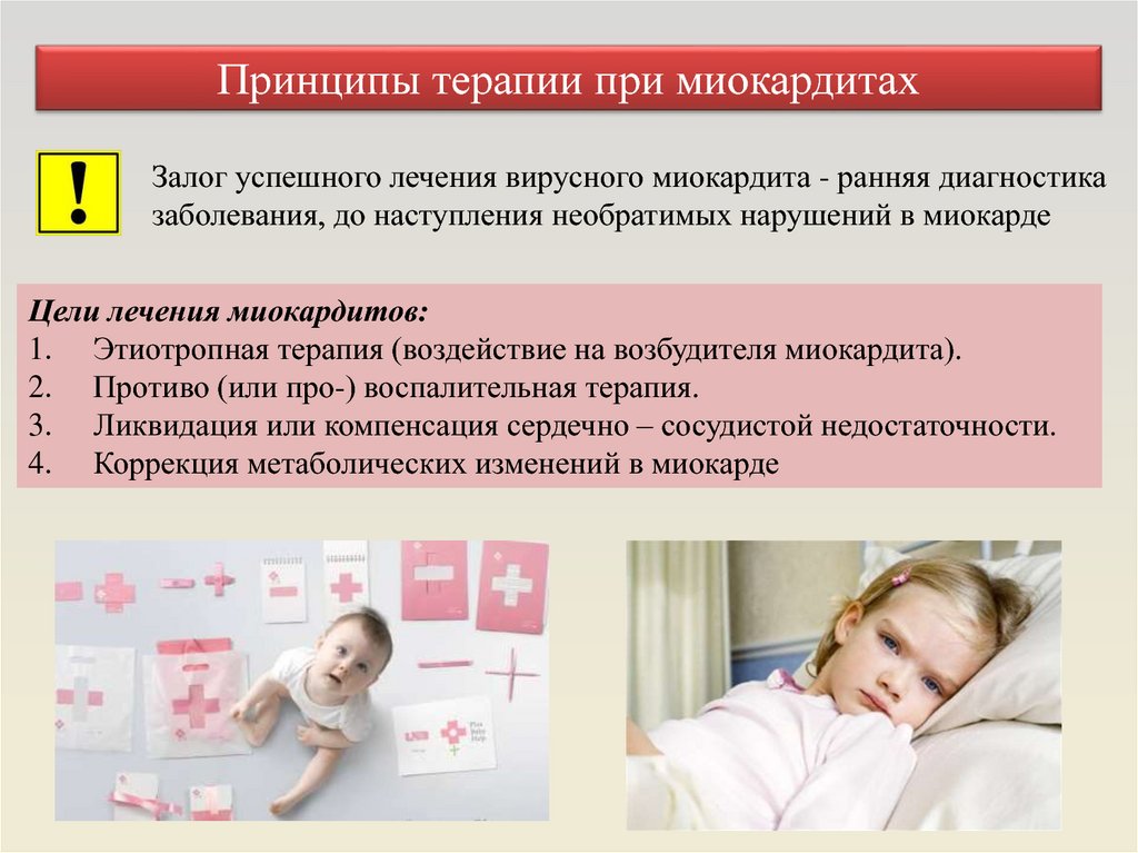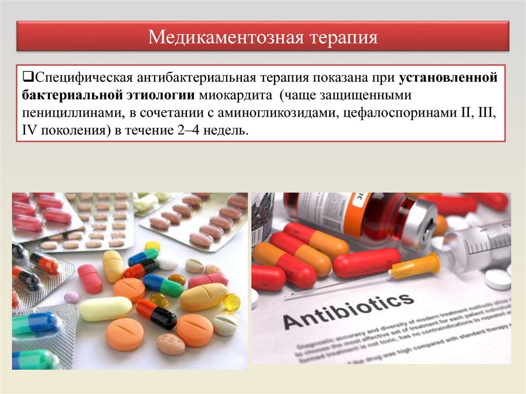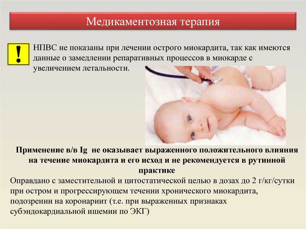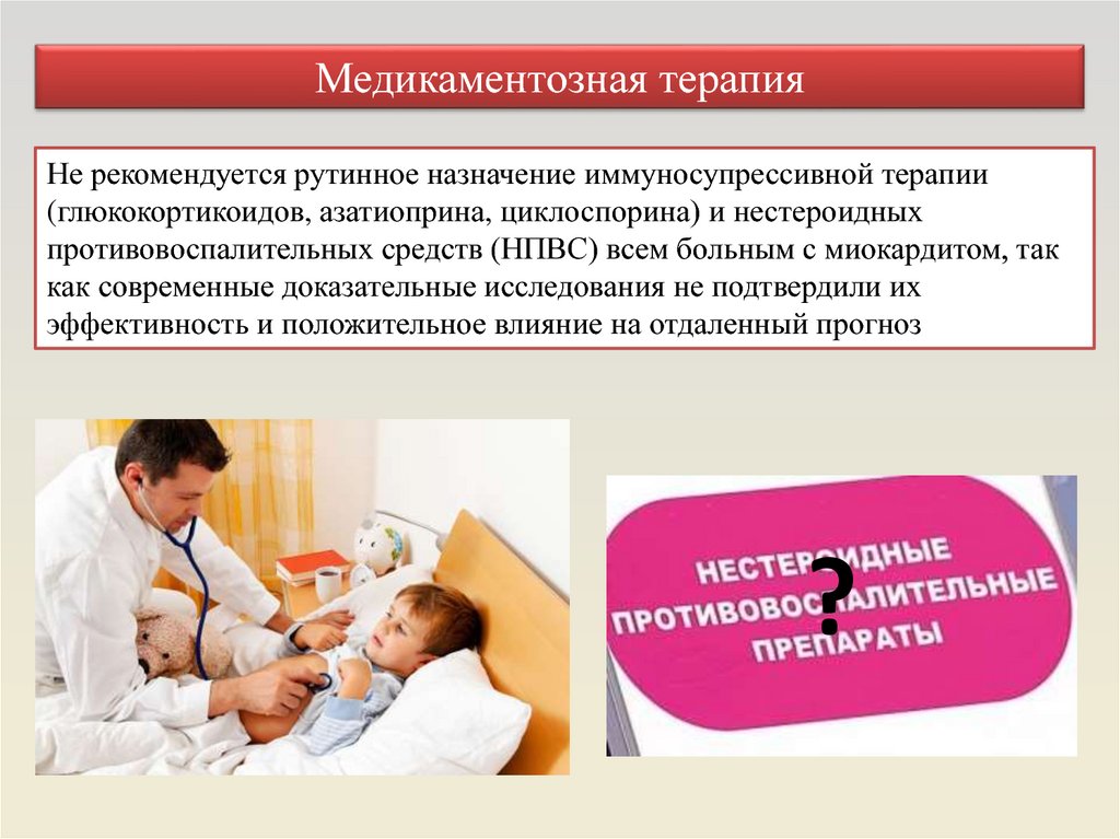 Медикаментозная терапияНПВС не показаны при лечении острого миокардита, так как имеются