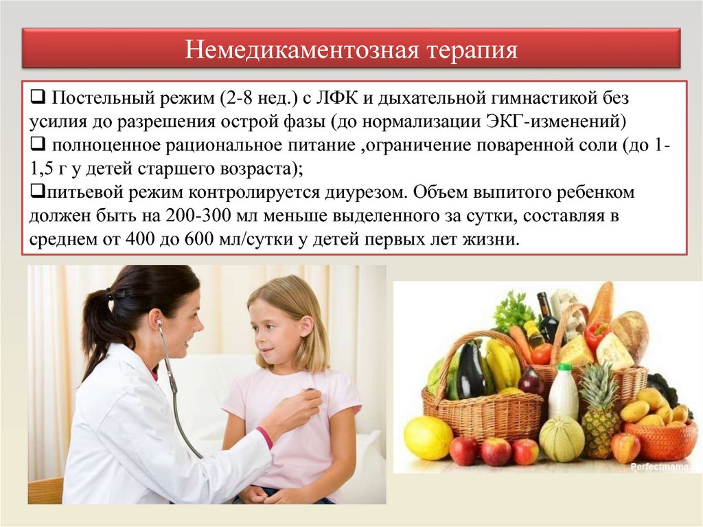 полноценное рациональное питание ,ограничение поваренной соли (до 11,5 г у детей старшего возраста);