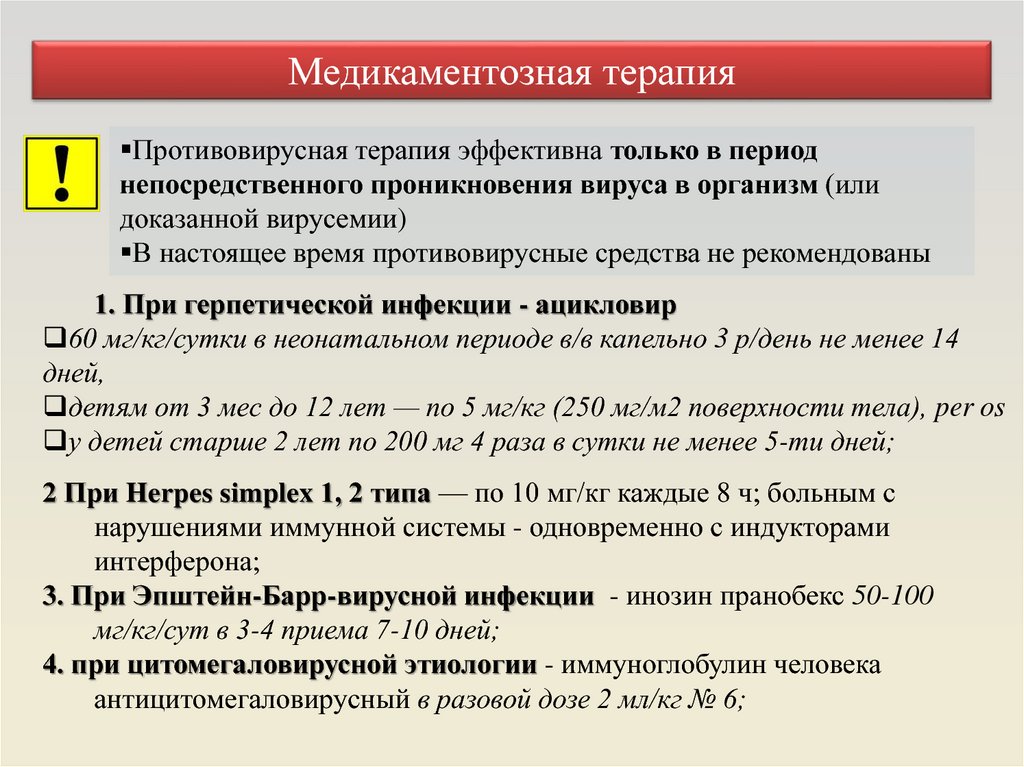 Медикаментозная терапияПротивовирусная терапия эффективна только в период