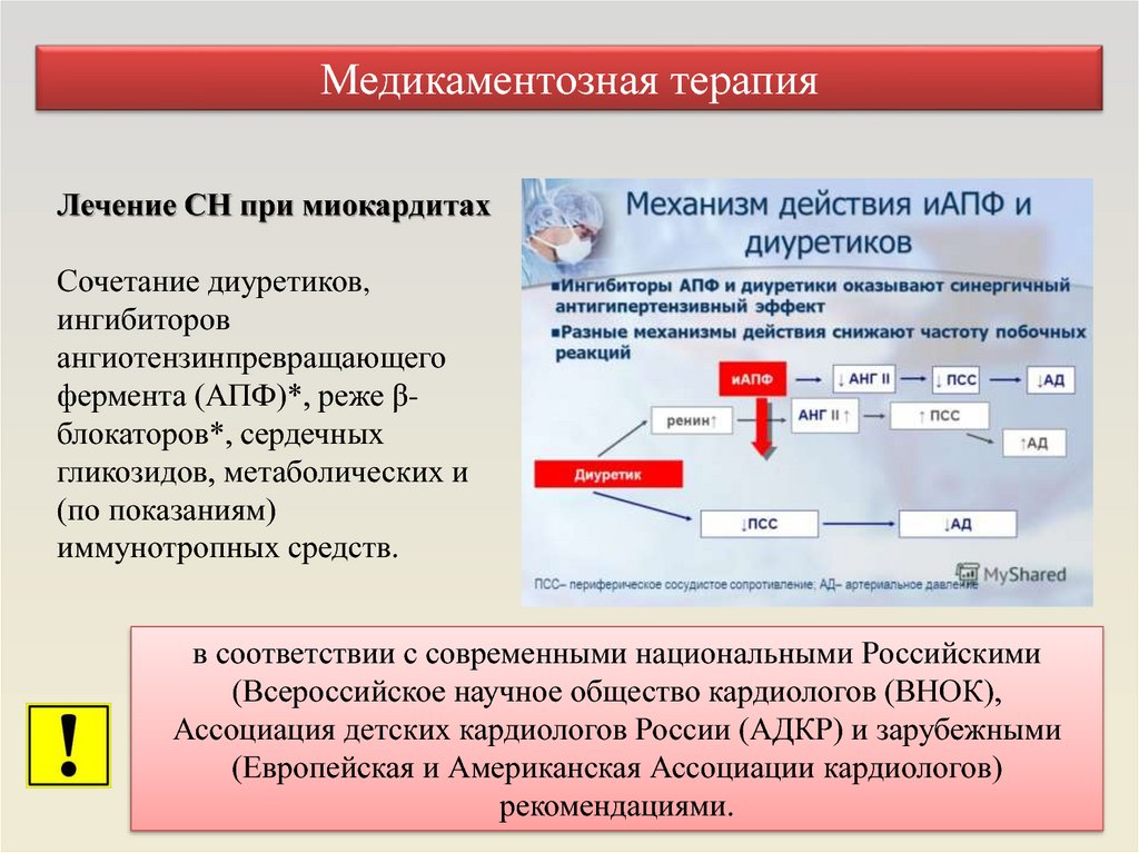 Медикаментозная терапияЛечение СН при миокардитах