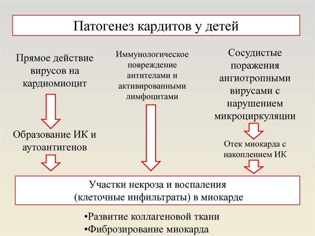 Патогенез кардитов у детейПрямое действие