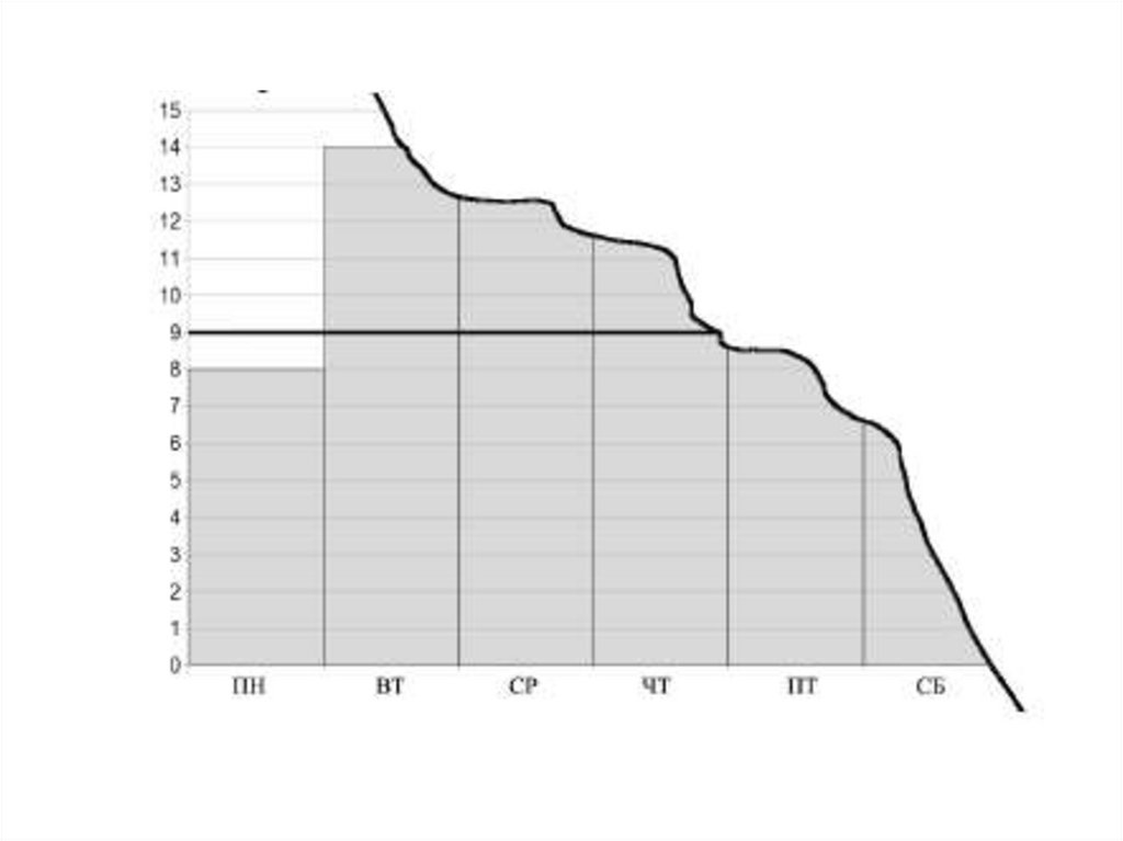 семи дней. Черта на диаграмме показываетсреднее число букв (оно равно 9). Буратино оторвал кусок
