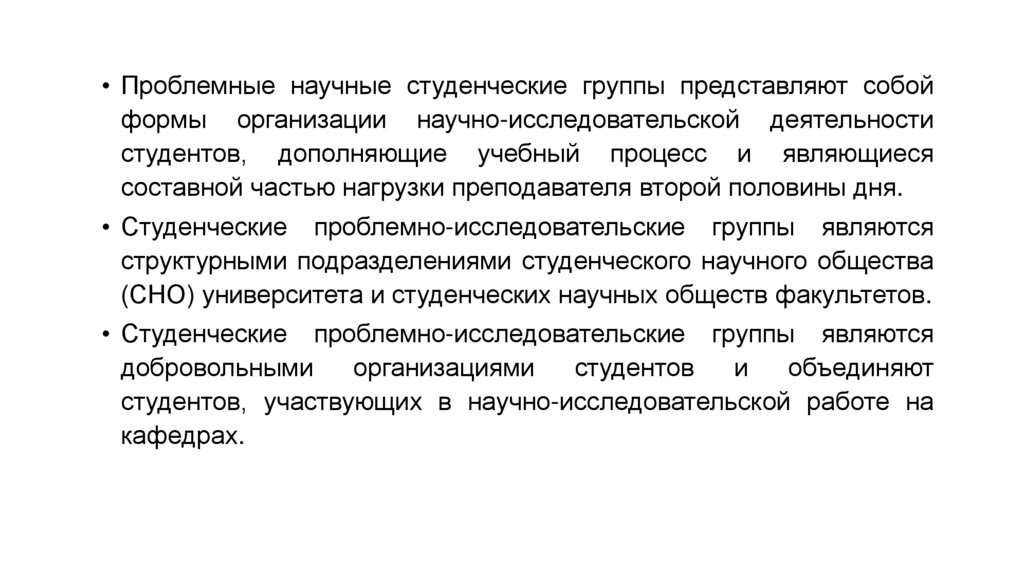 • Студенческие проблемно-исследовательские группы являются