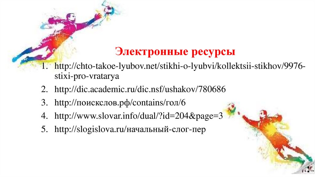 Электронные ресурсы1. http://chto-takoe-lyubov.net/stikhi-o-lyubvi/kollektsii-stikhov/9976stixi-pro-vratarya