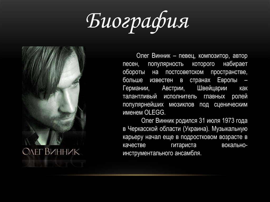 БиографияОлег Винник – певец, композитор, автор