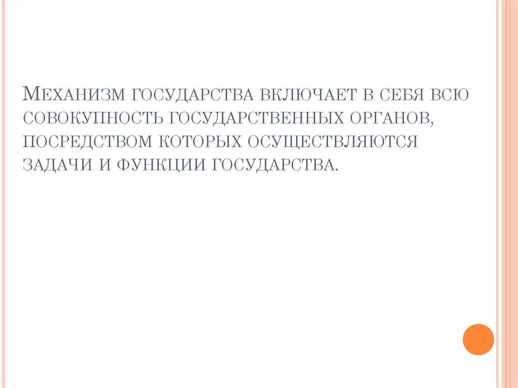 МЕХАНИЗМ ГОСУДАРСТВА ВКЛЮЧАЕТ В СЕБЯ ВСЮСОВОКУПНОСТЬ ГОСУДАРСТВЕННЫХ ОРГАНОВ,
