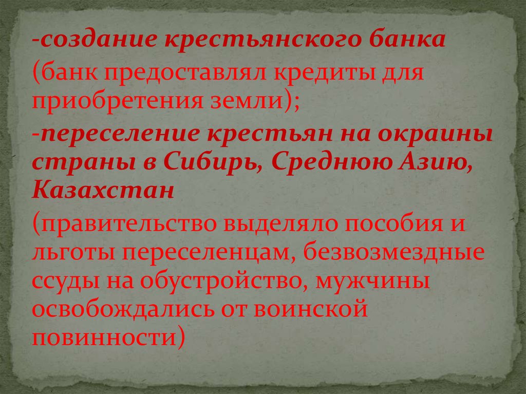 -разрушение крестьянской общины;9 ноября 1910 г. Указом императора был