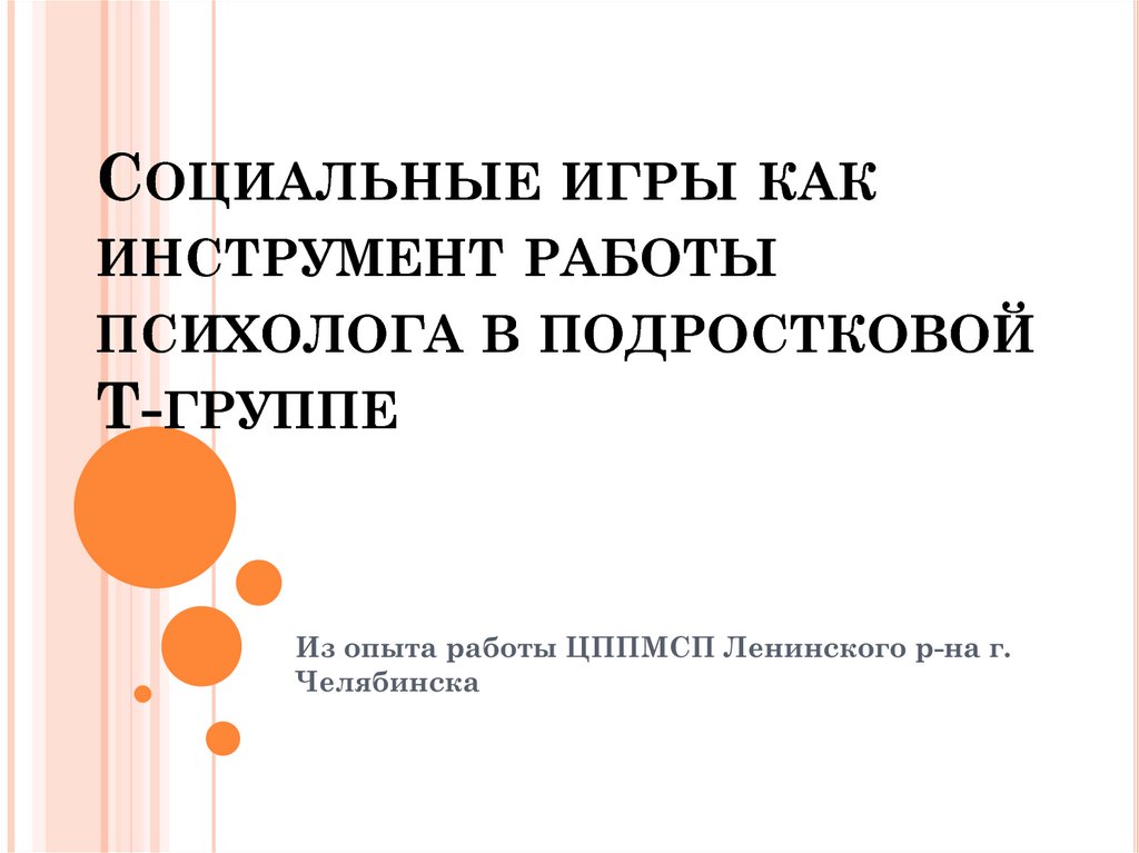 1. Социальные игры как инструмент работы психолога в подростковой Т-группе