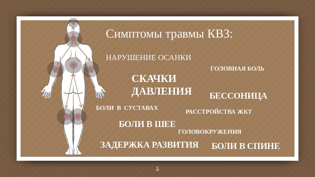 Симптомы травмы КВЗ:НАРУШЕНИЕ ОСАНКИ