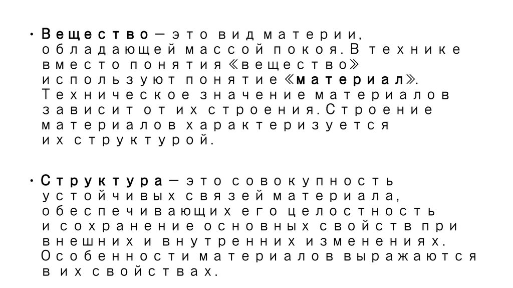 Вещество — это вид материи,обладающей массой покоя. В технике