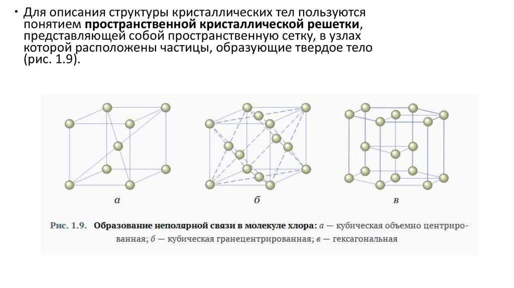 Для описания структуры кристаллических тел пользуютсяпонятием пространственной кристаллической решетки,