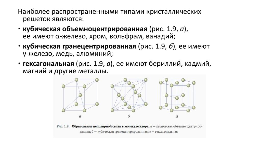 Наиболее распространенными типами кристаллическихрешеток являются: