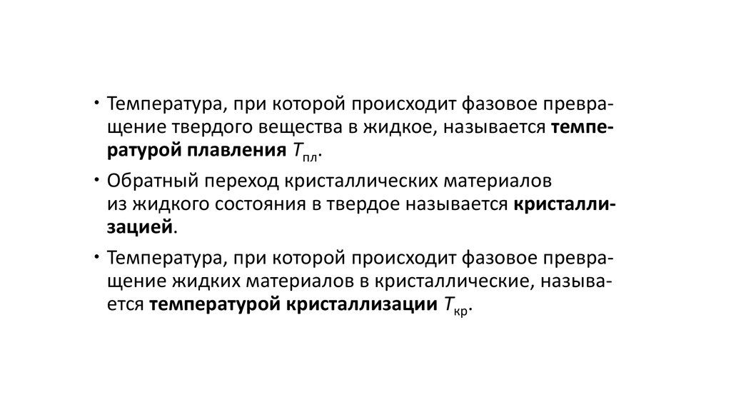 Температура, при которой происходит фазовое превращение жидких материалов в кристаллические, называется температурой кристаллизации Ткр.