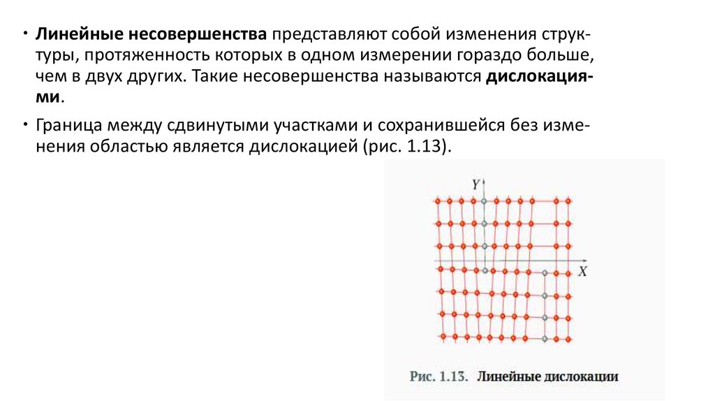 Граница между сдвинутыми участками и сохранившейся без изменения областью является дислокацией (рис. 1.13).
