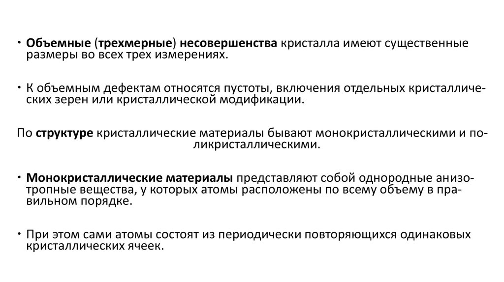 К объемным дефектам относятся пустоты, включения отдельных кристаллических зерен или кристаллической модификации.