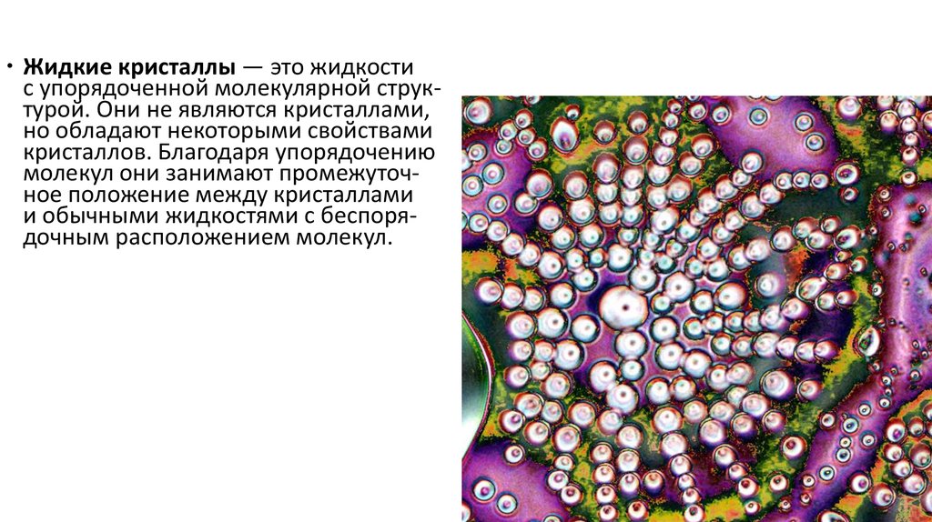 Жидкие кристаллы — это жидкостис упорядоченной молекулярной структурой. Они не являются кристаллами,