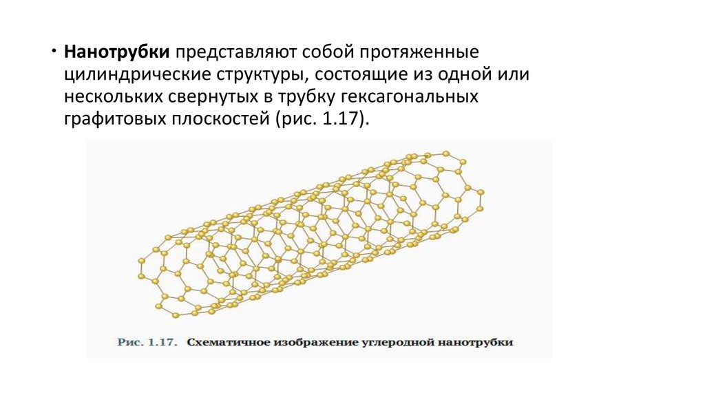 Нанотрубки представляют собой протяженныецилиндрические структуры, состоящие из одной или