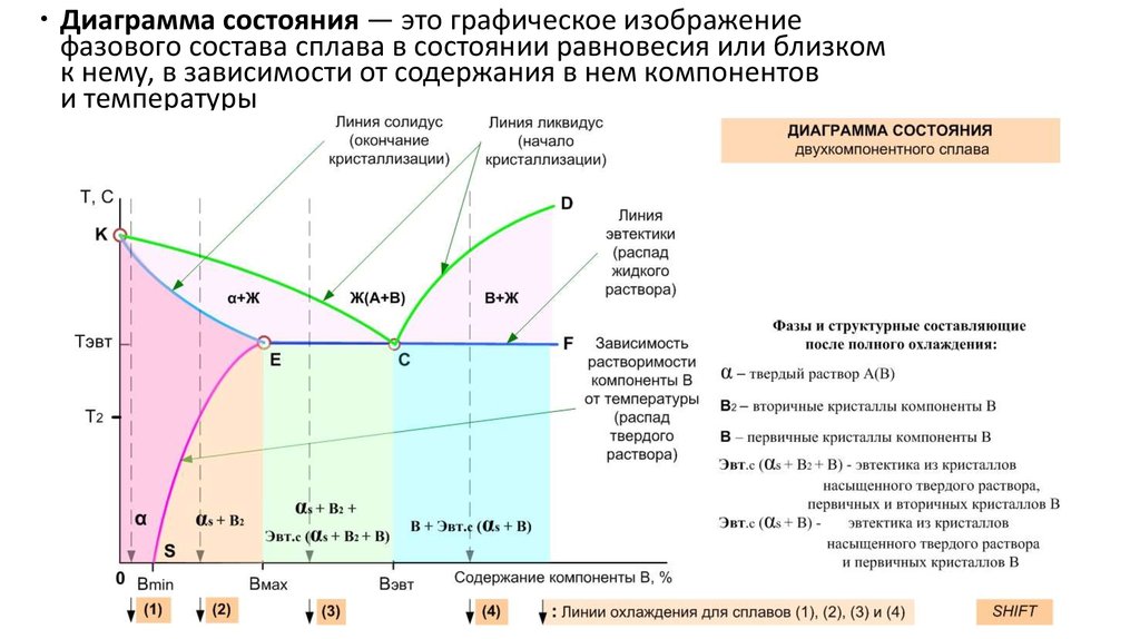 Диаграмма состояния — это графическое изображениефазового состава сплава в состоянии равновесия или близком
