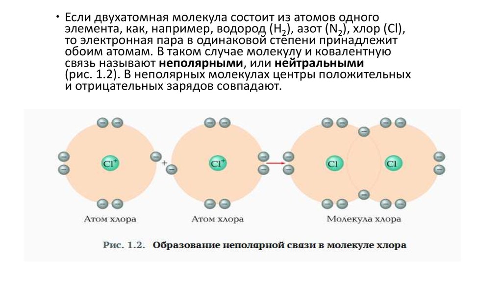 Если двухатомная молекула состоит из атомов одногоэлемента, как, например, водород (Н2), азот (N2), хлор (Cl),