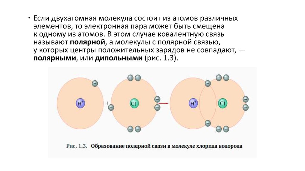 Если двухатомная молекула состоит из атомов различныхэлементов, то электронная пара может быть смещена