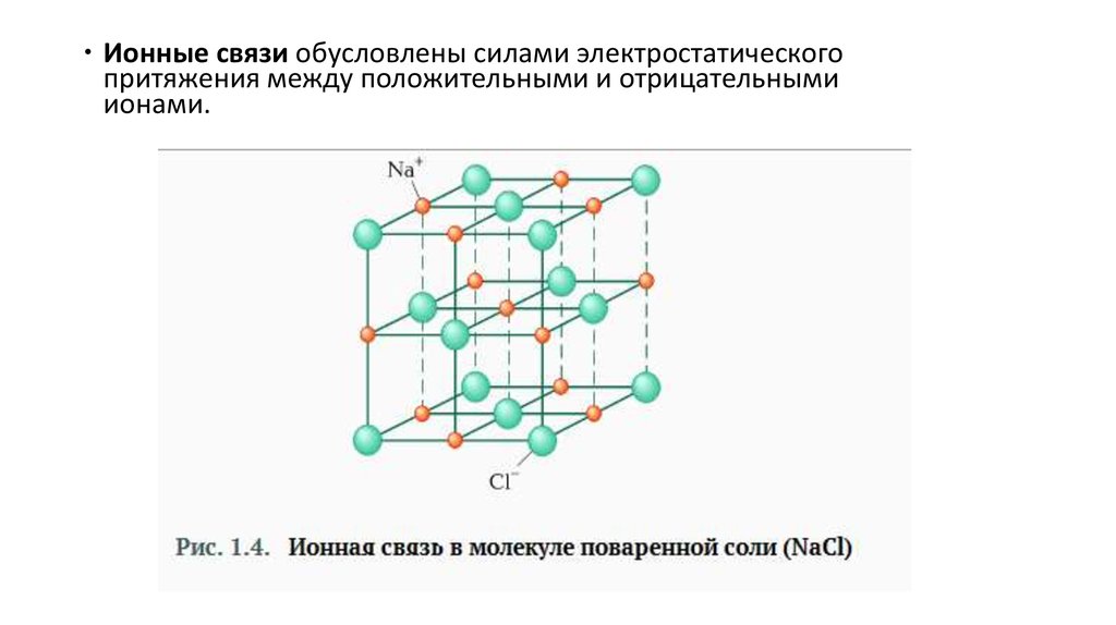Ионные связи обусловлены силами электростатическогопритяжения между положительными и отрицательными