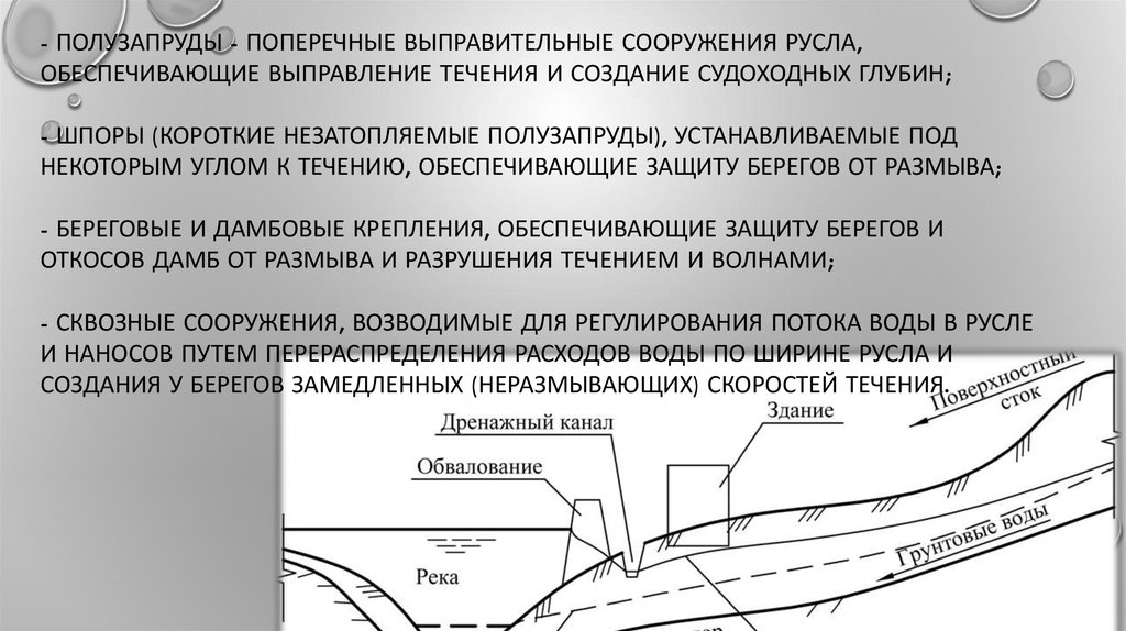 - ПОЛУЗАПРУДЫ - ПОПЕРЕЧНЫЕ ВЫПРАВИТЕЛЬНЫЕ СООРУЖЕНИЯ РУСЛА,ОБЕСПЕЧИВАЮЩИЕ ВЫПРАВЛЕНИЕ ТЕЧЕНИЯ И СОЗДАНИЕ СУДОХОДНЫХ ГЛУБИН;