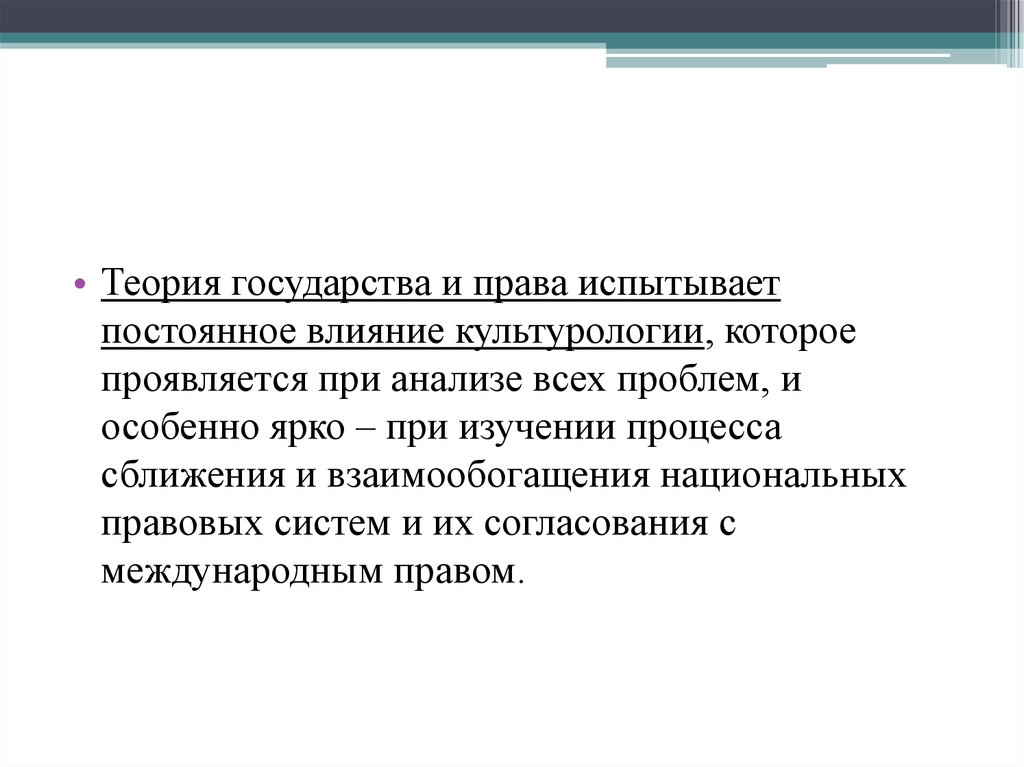 • Теория государства и права испытываетпостоянное влияние культурологии, которое
