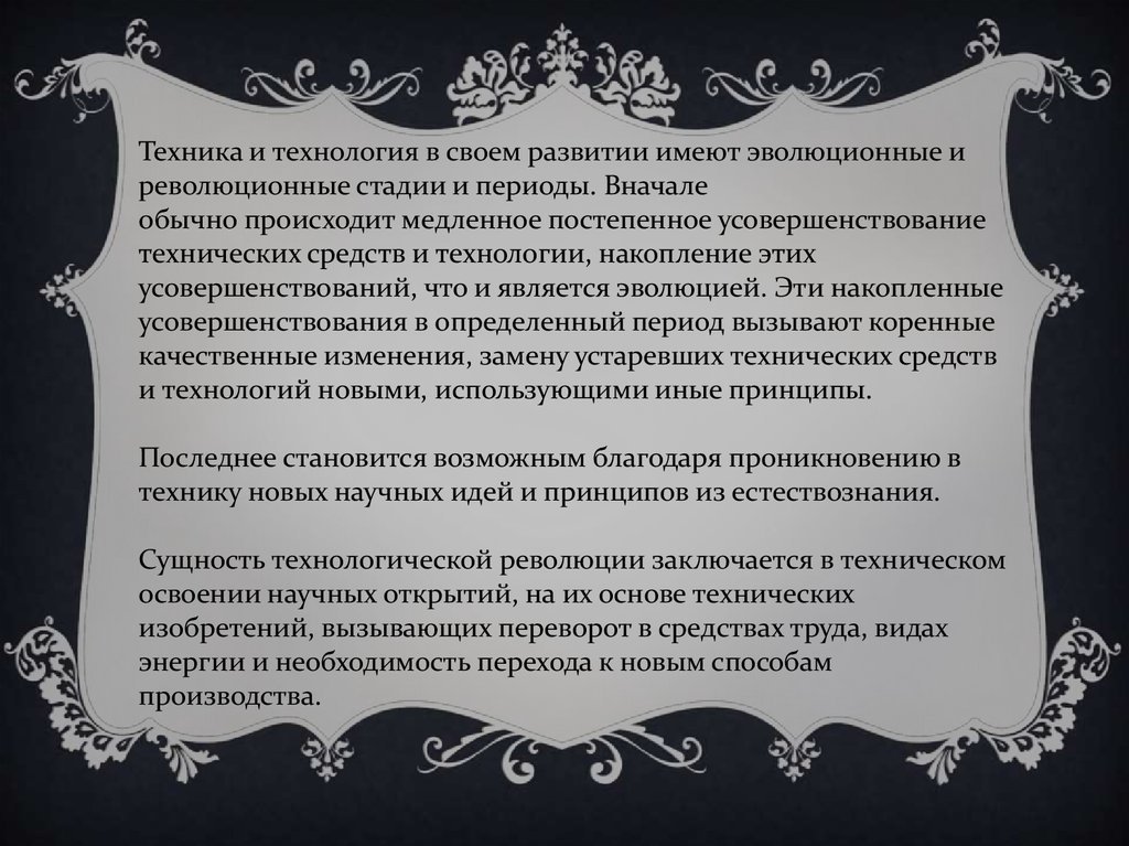 Техника и технология в своем развитии имеют эволюционные иреволюционные стадии и периоды. Вначале