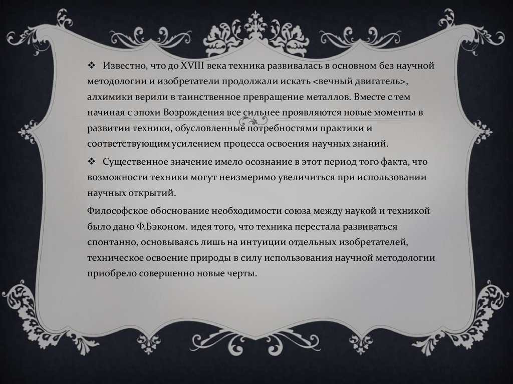 Известно, что до XVIII века техника развивалась в основном без научнойметодологии и изобретатели продолжали искать <вечный двигатель>,