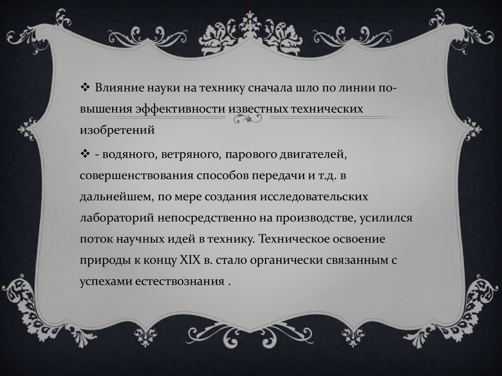 Влияние науки на технику сначала шло по линии по-вышения эффективности известных технических