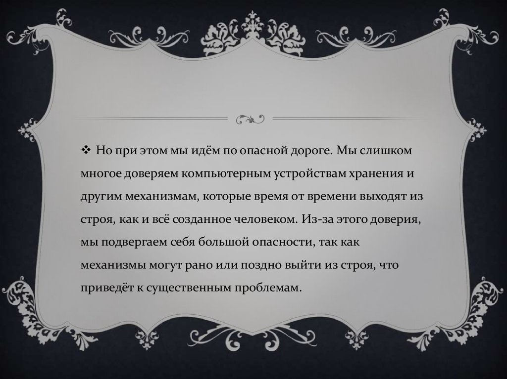 Но при этом мы идём по опасной дороге. Мы слишкоммногое доверяем компьютерным устройствам хранения и