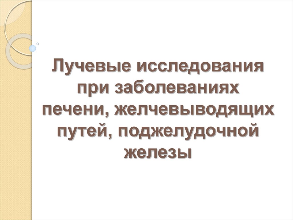 1. Лучевые исследования при заболеваниях печени, желчевыводящих путей, поджелудочной железы