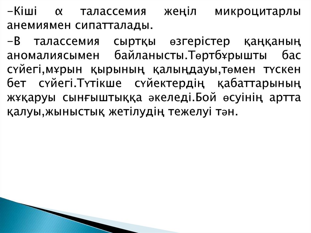-Кіші α талассемия жеңіл микроцитарлыанемиямен сипатталады.