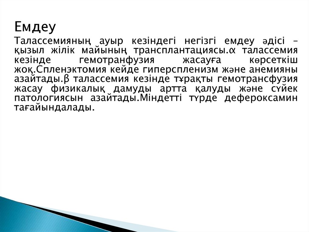ЕмдеуТалассемияның ауыр кезіндегі негізгі емдеу әдісі –