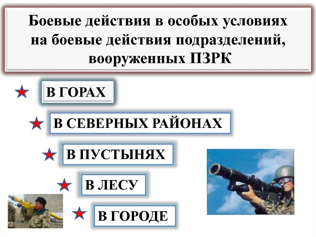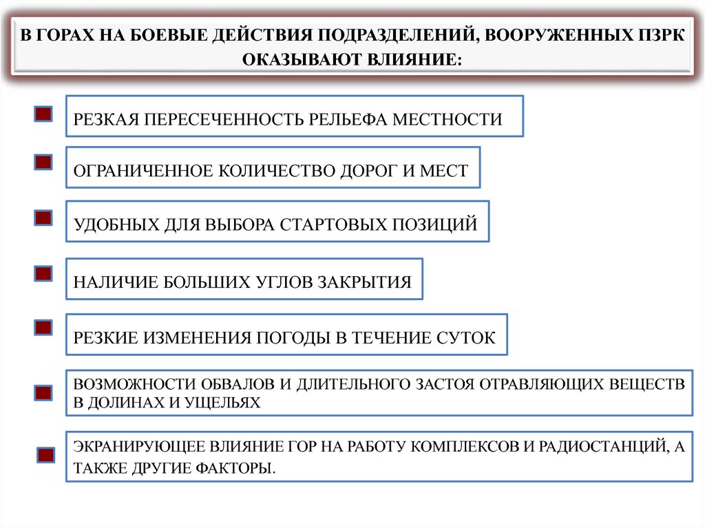 В ГОРАХ НА БОЕВЫЕ ДЕЙСТВИЯ ПОДРАЗДЕЛЕНИЙ, ВООРУЖЕННЫХ ПЗРКОКАЗЫВАЮТ ВЛИЯНИЕ: