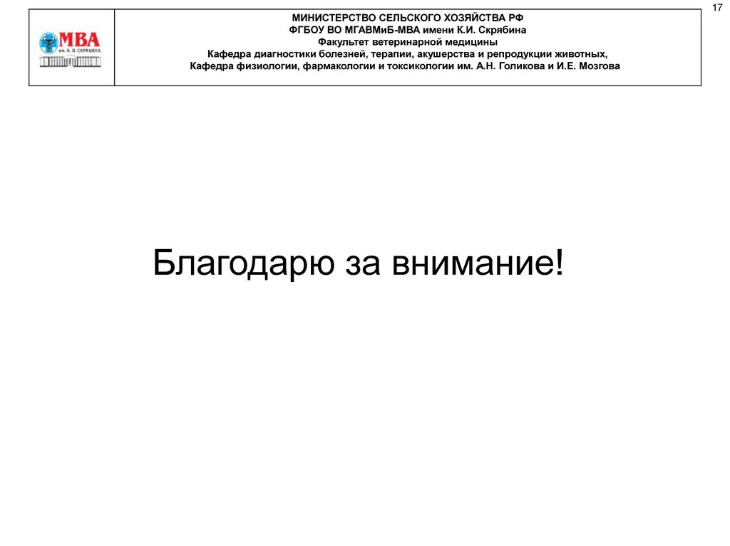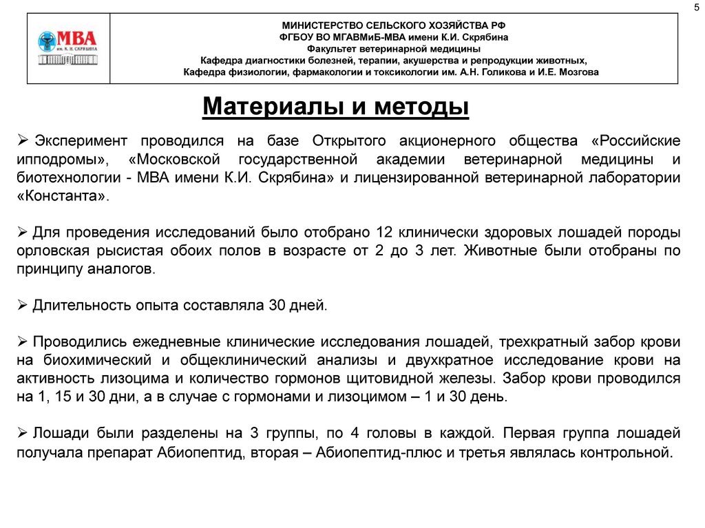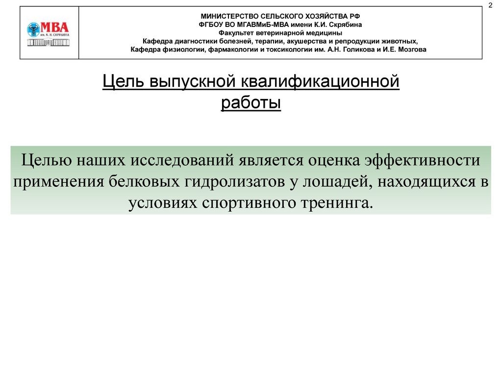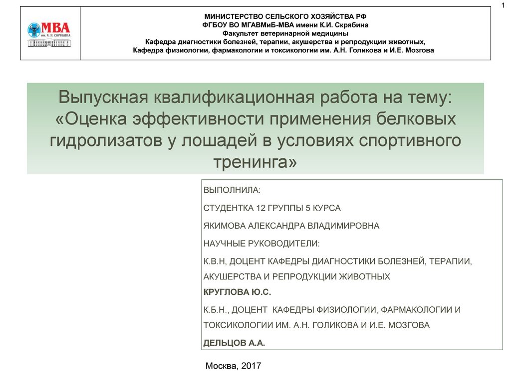 МИНИСТЕРСТВО СЕЛЬСКОГО ХОЗЯЙСТВА РФФГБОУ ВО МГАВМиБ-МВА имени К.И. Скрябина