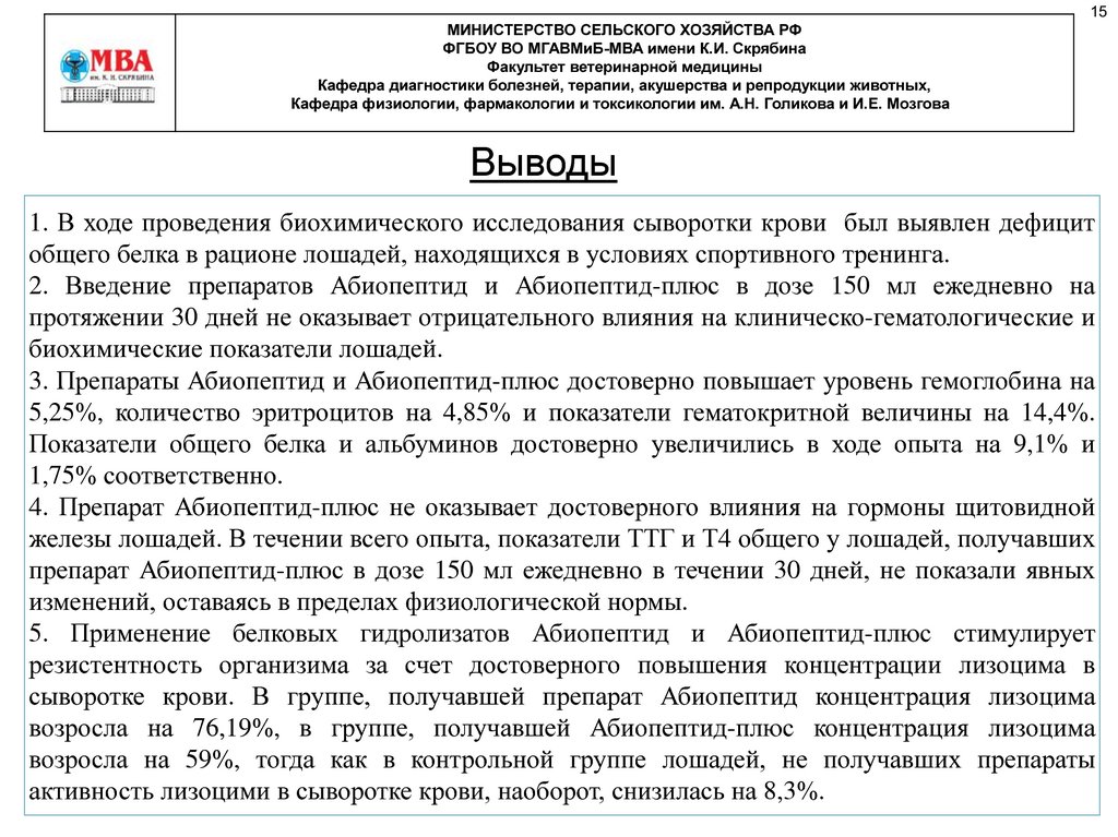 5. Применение белковых гидролизатов Абиопептид и Абиопептид-плюс стимулирует