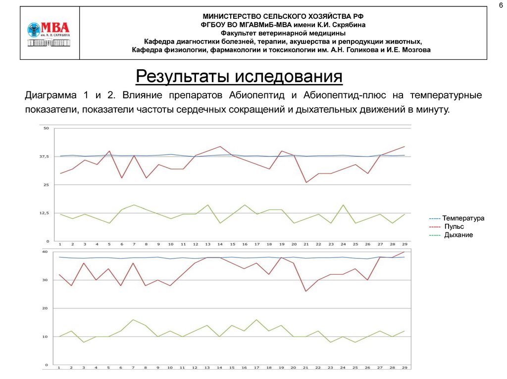 Диаграмма 1 и 2. Влияние препаратов Абиопептид и Абиопептид-плюс на температурные