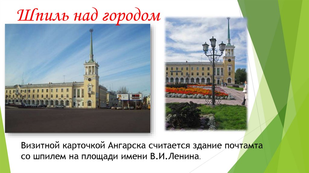Шпиль над городомВизитной карточкой Ангарска считается здание почтамта