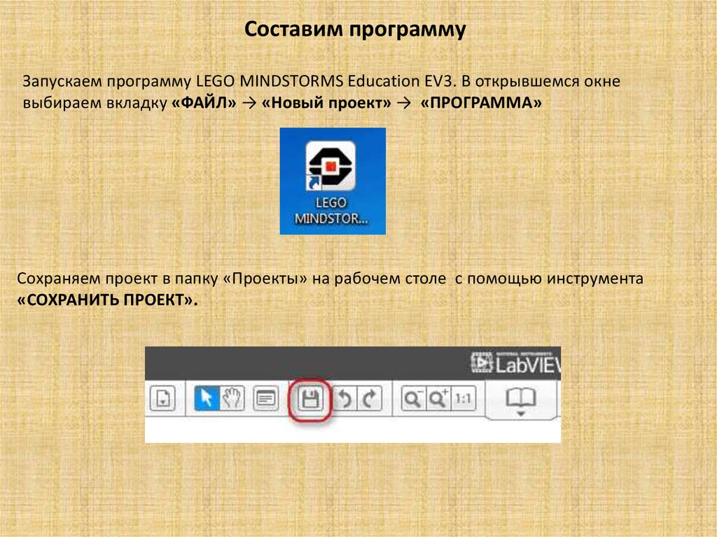 Составим программуЗапускаем программу LEGO MINDSTORMS Education EV3. В открывшемся окне