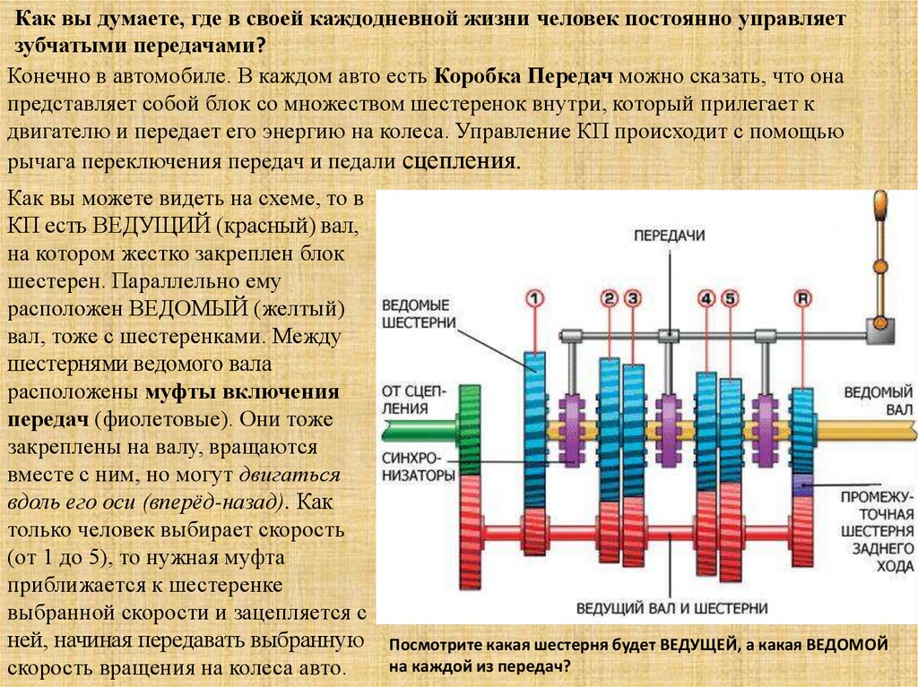 Посмотрите какая шестерня будет ВЕДУЩЕЙ, а какая ВЕДОМОЙ