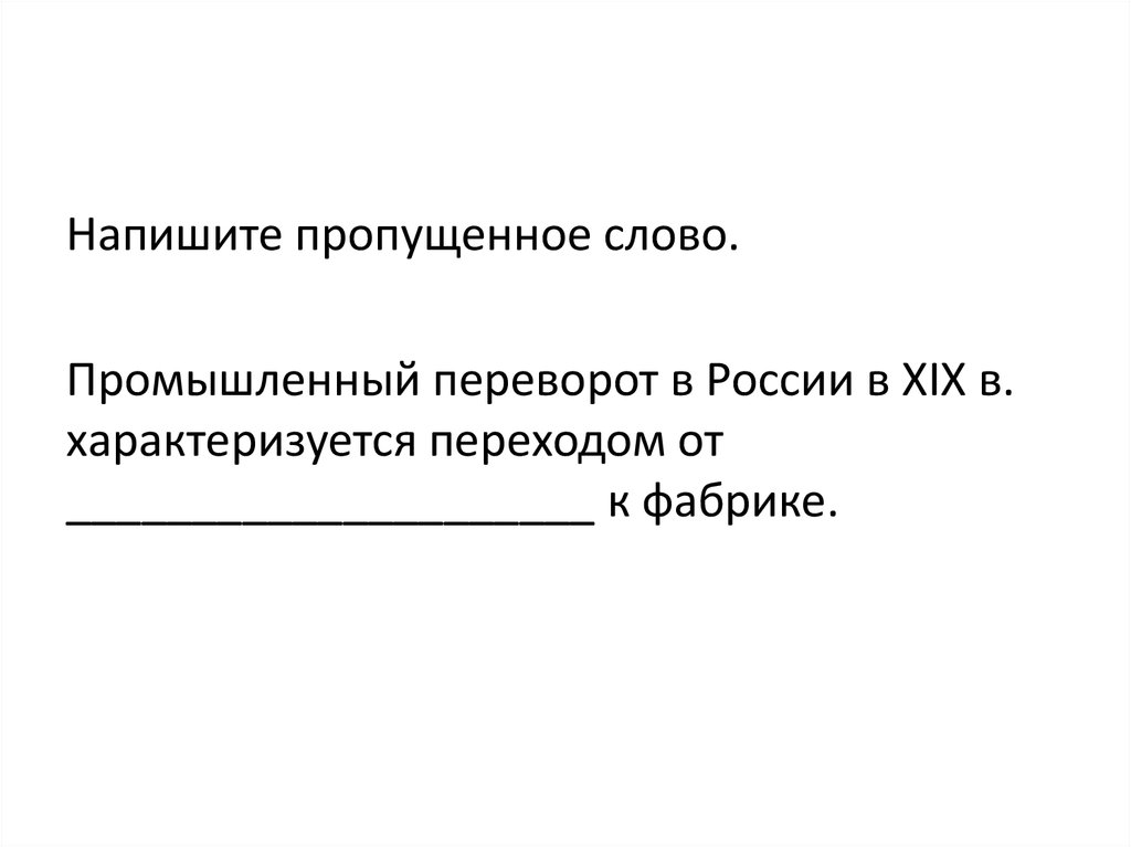 Напишите пропущенное слово.Промышленный переворот в России в XIX в.