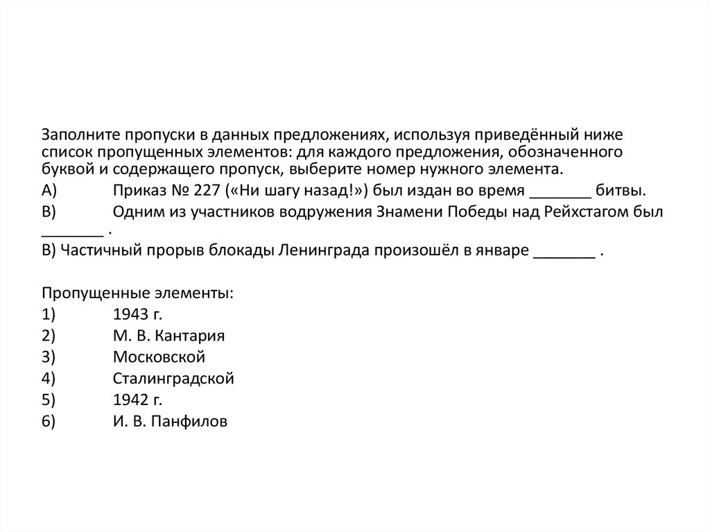буквой и содержащего пропуск, выберите номер нужного элемента.