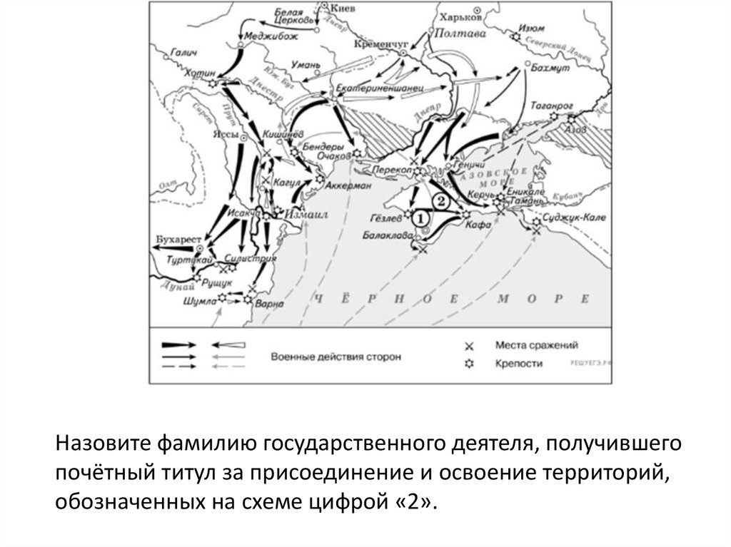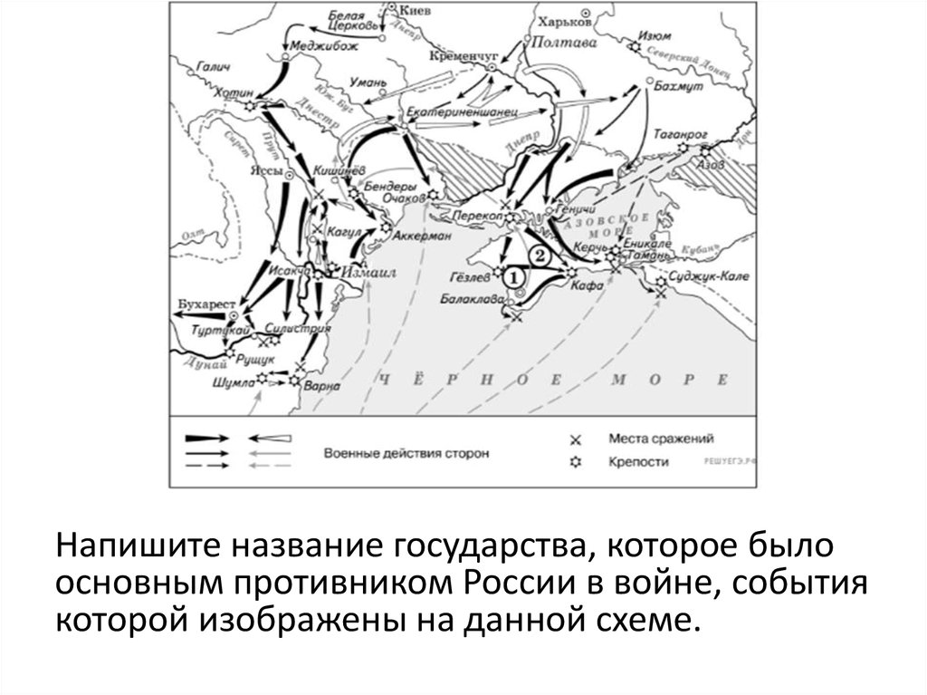 Назовите монарха (имя и порядковый номер словами,например ИванТретий), в чьё правление шла война, события которой обозначены на данной схеме.