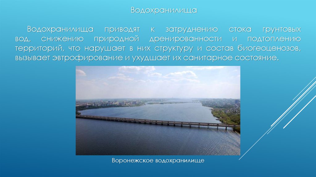 ВодохранилищаВодохранилища приводят к затруднению стока грунтовых