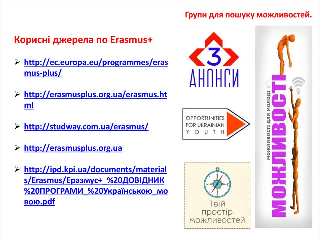 Групи для пошуку можливостей.Корисні джерела по Erasmus+
