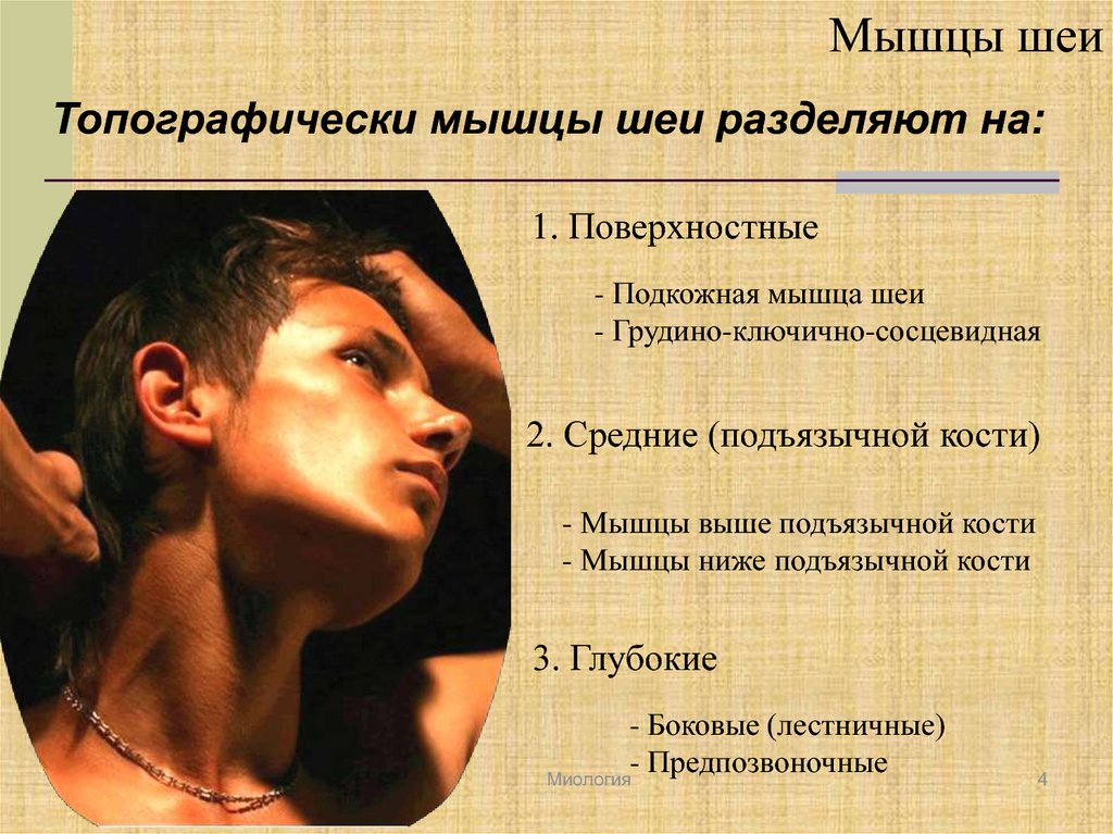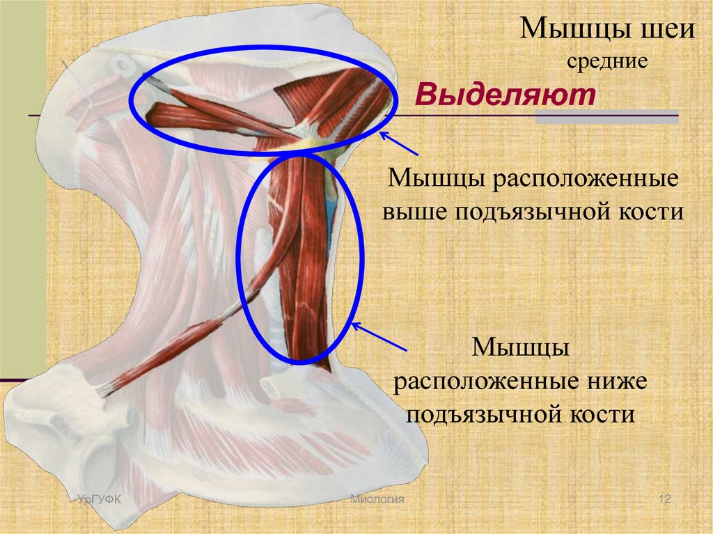 Мышцы шеиТопографически мышцы шеи разделяют на: