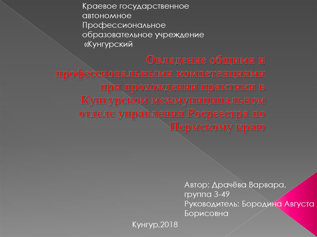 Овладение общими и профессиональными компетенциями при прохождении практики в Кунгурском межмуниципальном отделе управления