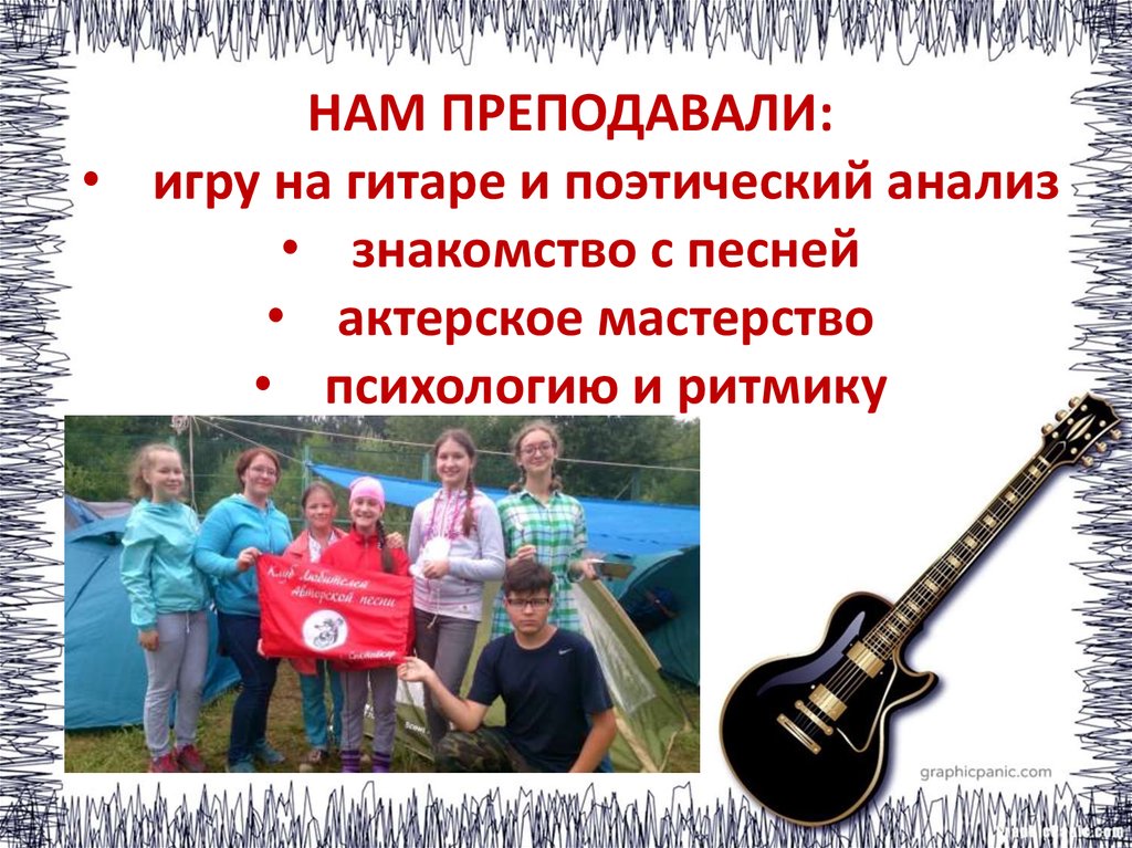 НАМ ПРЕПОДАВАЛИ:• игру на гитаре и поэтический анализ