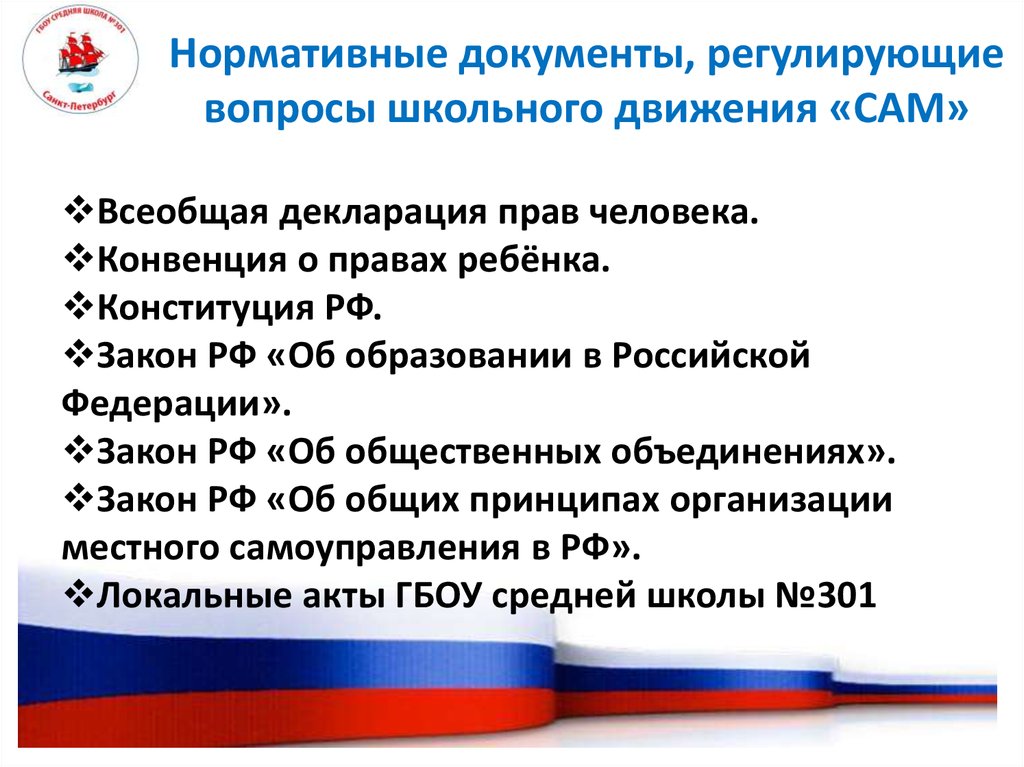 Нормативные документы, регулирующиевопросы школьного движения «САМ»